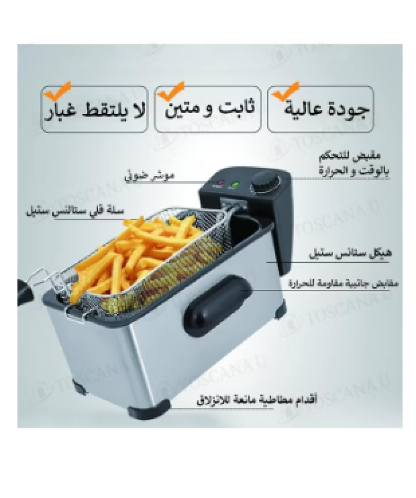 سواء كنت ترغب في تحضير بطاطس مقرمشة، دجاج ذهبي، خضروات طازجة، أو حتى المأكولات البحرية اللذيذة، توفر لك هذه القلاية الحل الأمثل لطهي سريع ومتقن بفضل سعتها الكبيرة وتقنياتها المتطورة.
